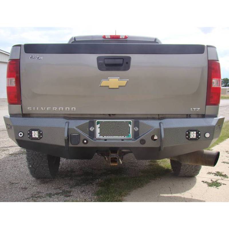 This steel bumper look great but it offers protection for the rear end of your truck. All TDK bumpers are handmade in the USA and meticulous production process results in high-quality rear bumpers that can endure the harshest conditions for a lifetime. In fact, this easy-to-install bumper may outlast your truck. If the bumper is shipped with a bare steel finish, it is shrink-wrapped ready to paint with no swirl marks TDK bumpers are also available in three colors of powder coating to prevent corrosion. If your aluminum or plastic stock bumper isnt offering the protection and rugged look your hard-working truck needs.