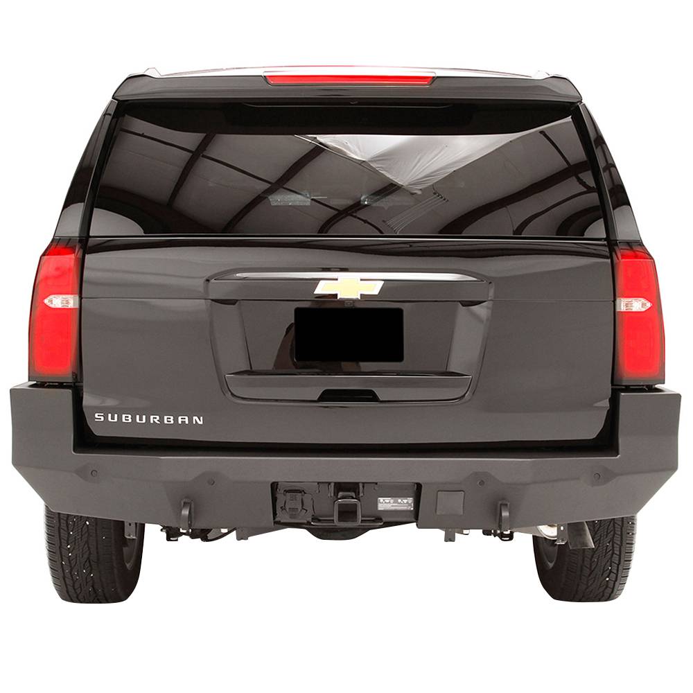 The Fab Fours Chevy Suburban rear replacement bumper integrates the existing receiver hitch. In addition to added style and formed-steel durability, the vehicle gains lower steps and recovery points. Designed to be the ultimate in functionally-stylish rear-end protection.