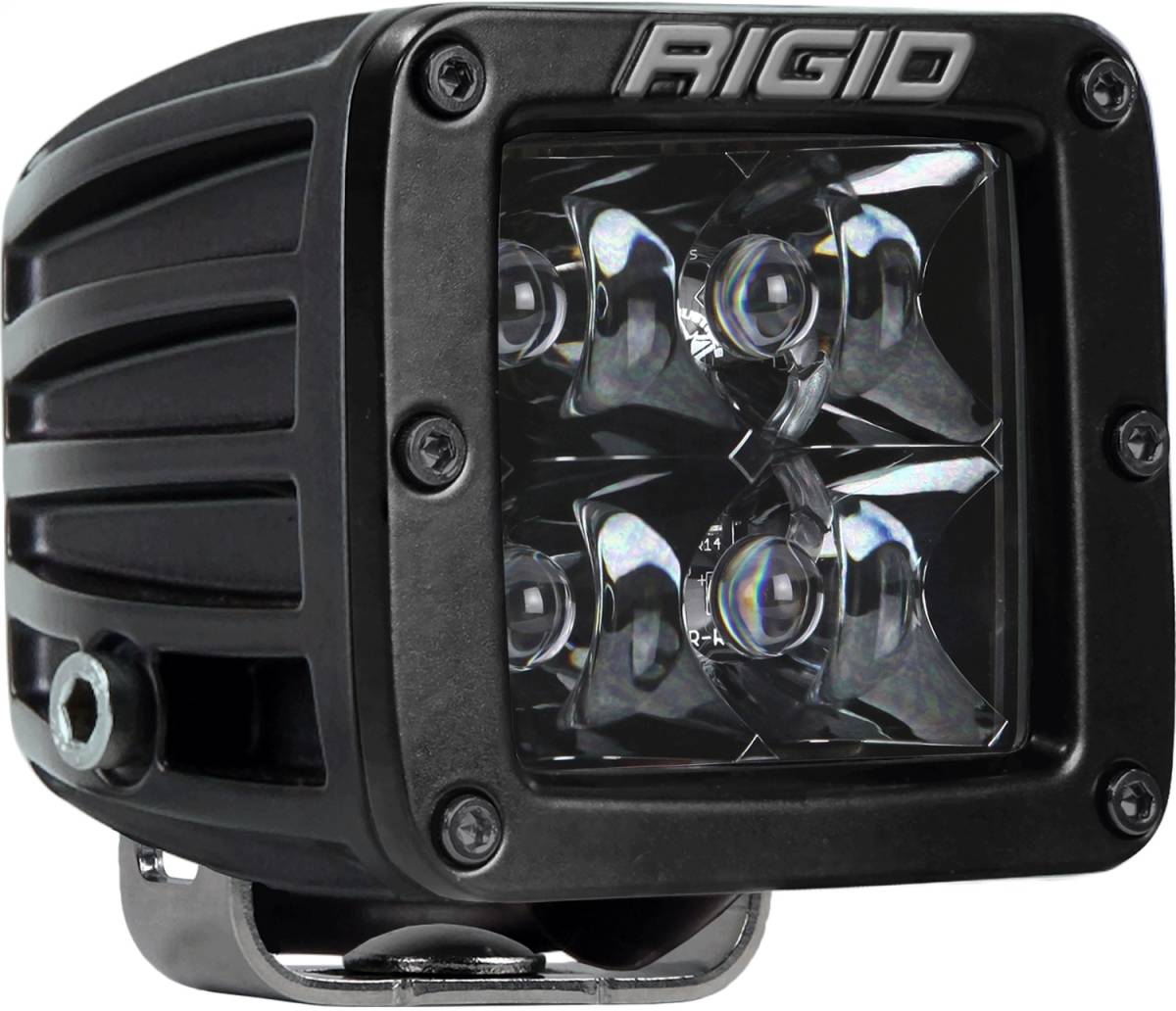 Rigid Industries 201213BLK D-Series Pro Spot Light Surface Mount - Hybrid - 4 White LEDs - Black Enamel Finish - Midnight Black Square Housing - Single