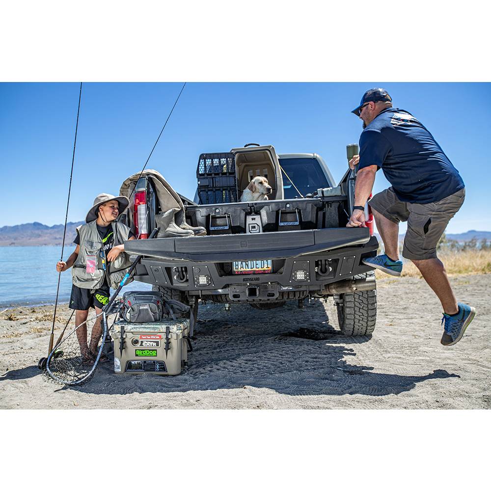 This is premium series, heavy-duty rear replacement bumper featuring off-road Rigid LED lighting options. Perfect for the off-road enthusiast or show truck.