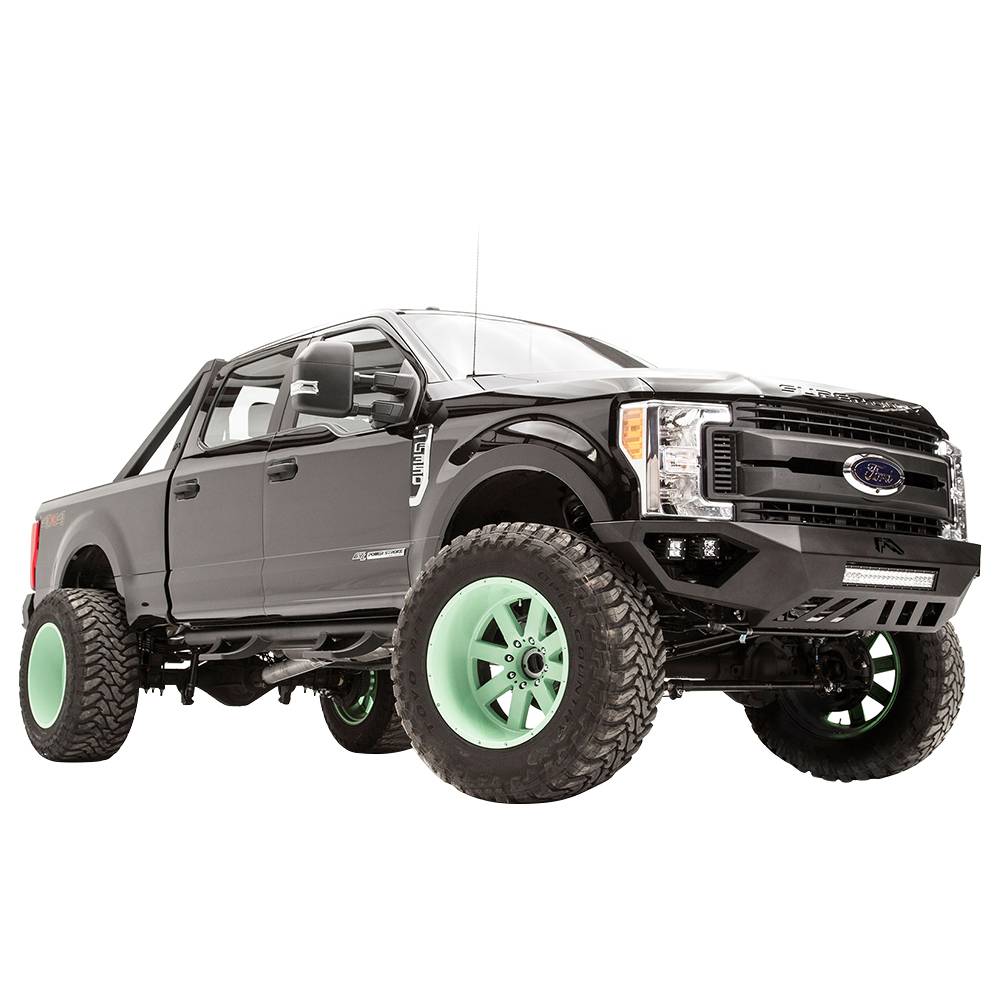 The Fab Fours new line of light weight bumpers: Vengeance Series. These premium steel sensor bumpers are engineered to be light weight and offer a sleek and stylish finish for both the front and rear of your vehicle. Integrated 20 inch LED light bar housing in the center and mounting options on each side for (2) 3-inchs LEDs to give you maximum LED light coverage. The fit of this bumper is high and tight and comes with lower cutouts to provide increased airflow while also giving you that aggressive look both on and off the road.
