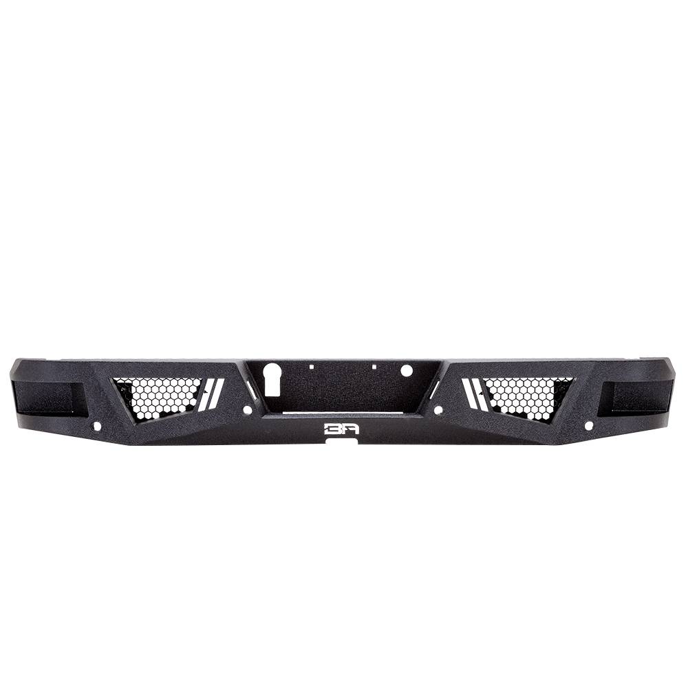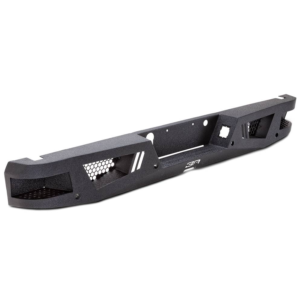The new Eco Series rear is designed to add more style to the popular truck. The Eco Series bumper has many design features that make the investment in one of these bumpers an easy choice. Great Price as well. Some of the features include convenient step pockets at each corner. Stylish pockets in each bumper wing feature a pentagon patterned mesh. These pockets also double as a light mounting points for dual cube LED lights. We have also included provisions for the backup sensors, hitch electrical hook up and spare tire crank access pocket. Also included are mounts for the OEM license plate lights. This bumper is designed to work with the factory hitch. Painted in popular textured black powder coat. Easy bolt on installation.
