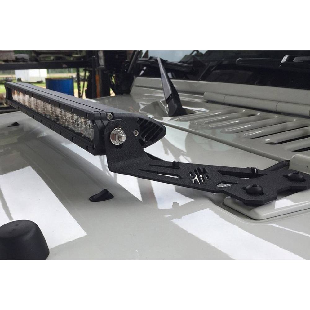 "HH" logo 20" Light bar hood mounts for Jeep JK 2007-2017. Accommodates a 21.5" total length light bar.