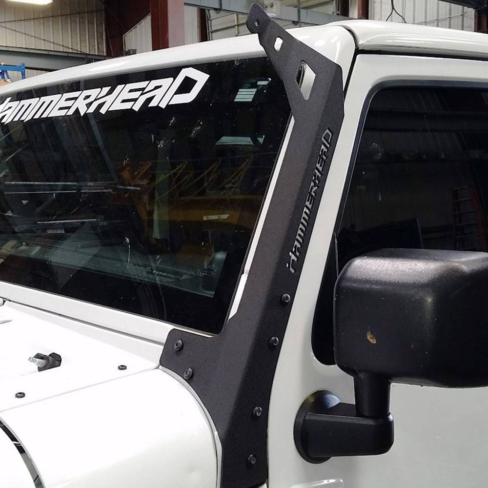 "Hammerhead" logo A-Pillar 50" Light bar mount for Jeep JK 2007-2017. Accommodates a 51.5" total length light bar. As a result of our extensive noise reduction testing, we highly recommend using three of universal LED bar dampers with these light mounts. Light bar total width Must be 51.5" +/- 0.125".