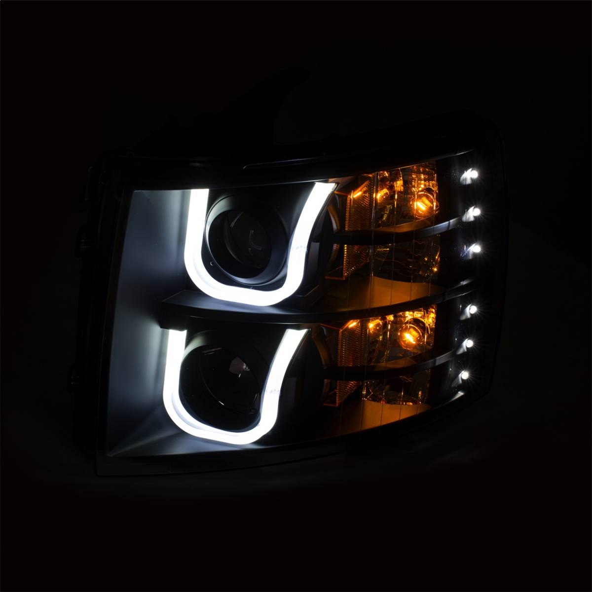 Anzo USA 111384 Projector Headlight Set w/U-Bar Switchback Black w/Amber