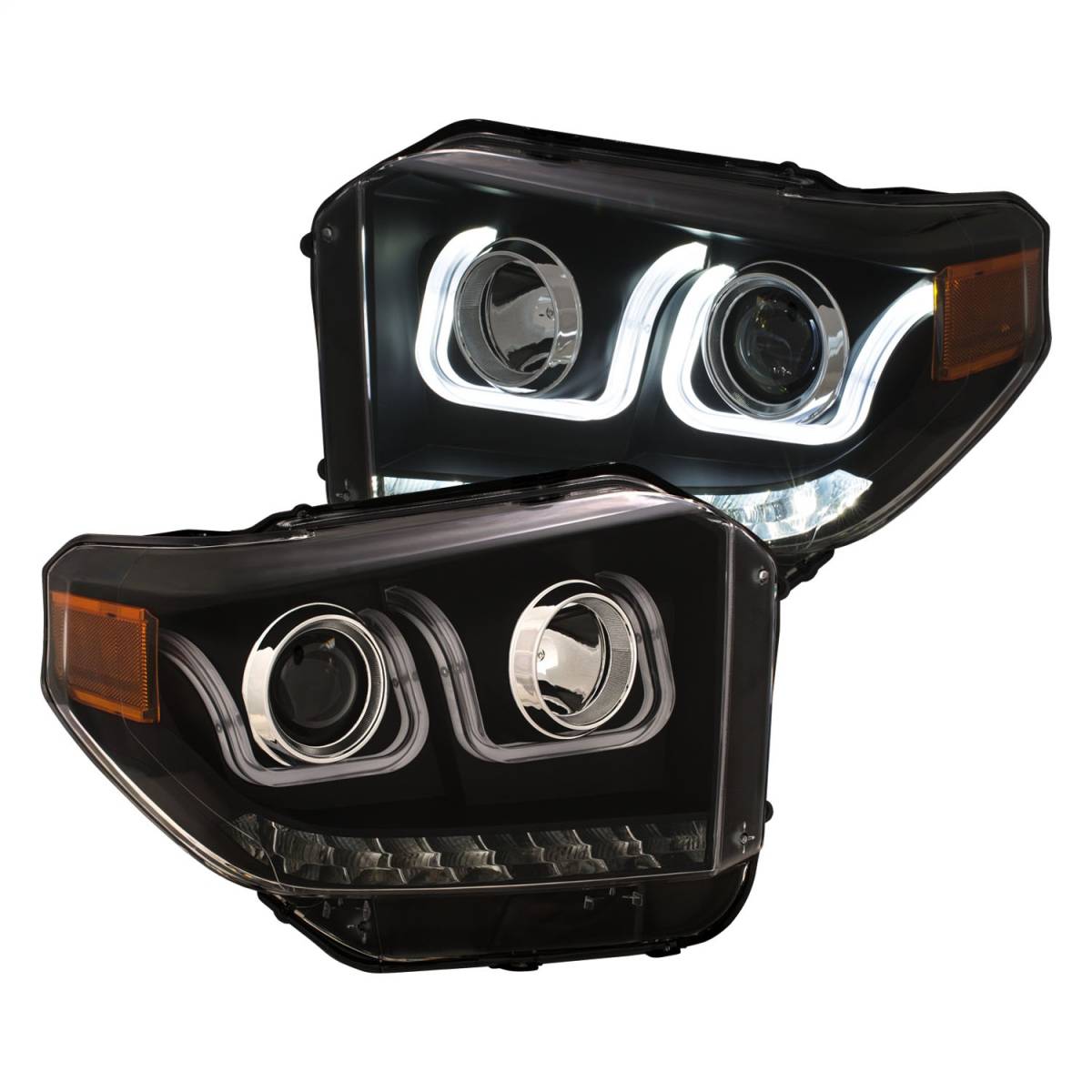 Anzo USA 111387 Projector Headlight Set w/U-Bar Switchback Black w/Amber