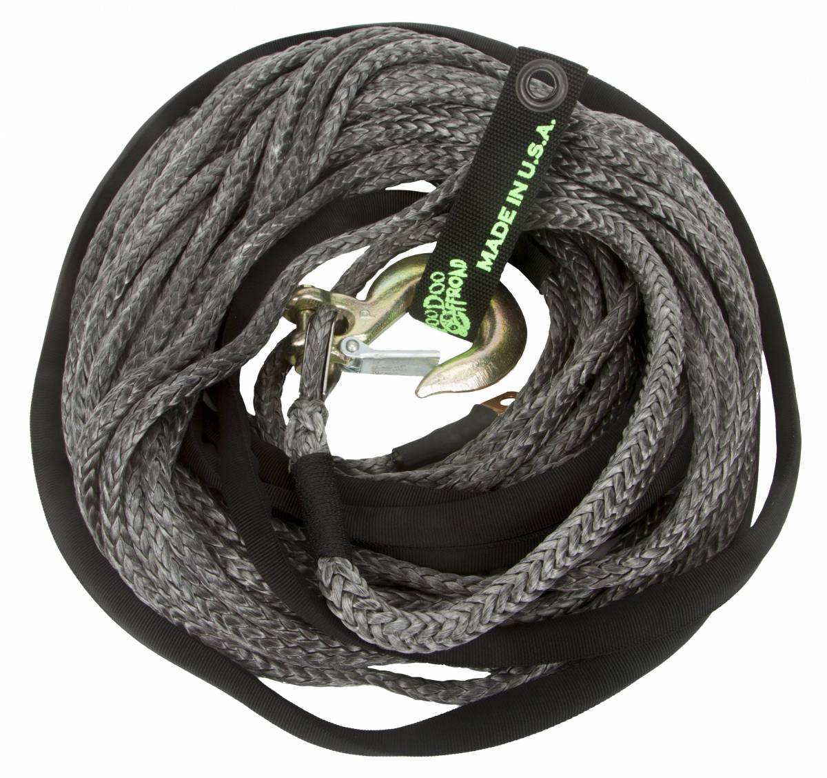 Want to get the most performance and best recovery experience out of your winch? Voodoo Offroad Plasma winch lines are the answer! Voodoo Offroad Plasma synthetic fiber winch lines are specially formulated and altered at a molecular level for optimum strength. Since Voodoo Offroad Plasma synthetic winch lines are 86% lighter than steel cable they are easier to handle, quicker to rig and safer to use than any steel cable. They will not rust, corrode or develop skin-tearing "fish hook" burrs as wire rope can. Since Voodoo Offroad Plasma synthetic winch lines develop no kinks and have no memory like steel cable they will spool more evenly and pull off the drum easier than steel making them stronger, safer, and more reliable than any steel cable on the market. Voodoo Offroad Plasma winch lines donÕt store energy so you will get no whiplash or recoil eliminating any opportunity for the rope snapping back. Made in the USA, Voodoo Offroad Plasma synthetic winch lines are ready for the toughest jobs both on- and off-road getting you out of the places you DonÕt Dare to Go!