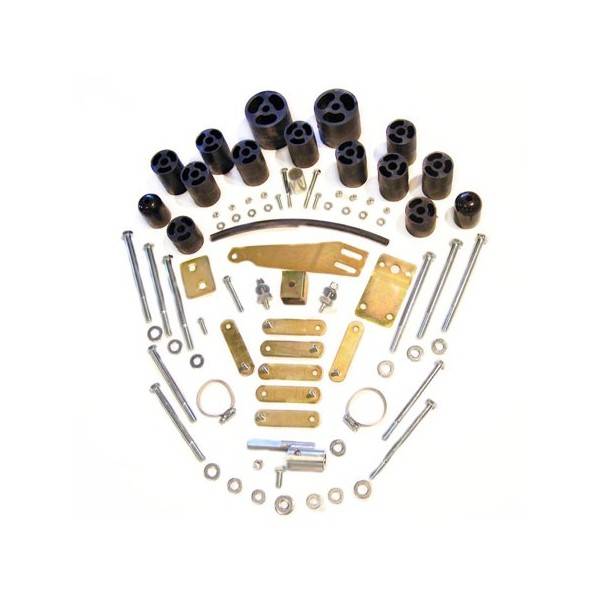 The Performance Accessories 973 Body Lift Kit is a popular method to raise Jeep Wrangler TJ by providing three-inches of additional lift and allowing the use of up to 32-inch diameter tires. This kit includes all the necessary components to raise the vehicle in 4 to 5 hours. This kit includes high pressure fiberglass reinforced nylon lift blocks, manual transmission shift extension, Automatic transmission extension bracket, transfer case pivot and radiator dropdown brackets. Add a set of Performance Accessories urethane (Gap-Guards 4wd PN-6908) to extend the inner wheel well covers and hide any visible gaps between the body and frame (sold separately).
