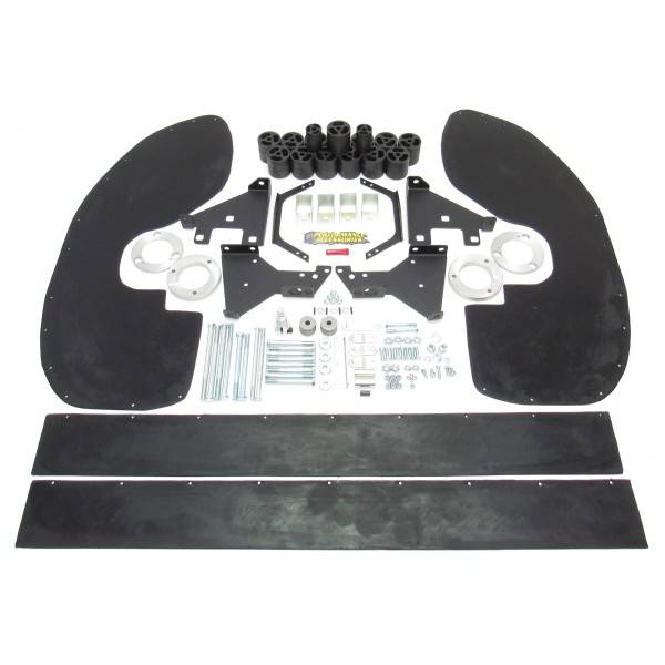 Performance Accessories PAPLS118 Premium Lift System raises the vehicle 5-inches by combining the industry's highest quality body-lift and leveling kit. This complete system allows the vehicle to run up to a 33 inch diameter tire (OEM wheel set will allow up to 35x12.50R18 without additional modifications.), and includes two high quality machined billet aluminum strut spacers, high pressure fiberglass reinforced nylon lift blocks, 3/16 inch thick laser cut and powder coated bumper relocation brackets, a CNC machined and zinc plated steering extension, high strength hardware, extension brackets, and urethane wheel-well extensions (Gap Guards) that conceal any gaps between the body and frame. This system can be installed in 9 to 10 hours and comes complete with everything necessary for installation.