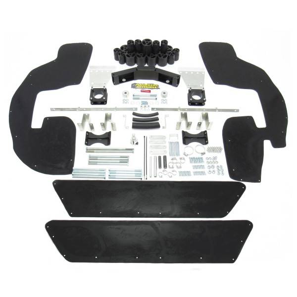 Performance Accessories PLS573 Premium Lift System raises the vehicle 5.5-inches by combining the industry's highest quality body-lift and leveling kit. This complete system allows the vehicle to run up to a 35-inch diameter tires. This coil spring leveling kit includes strut extensions with differential drop spacers, high pressure fiberglass reinforced nylon lift blocks, 3/16 inch thick laser cut and powder coated bumper relocation brackets, a CNC machined and zinc plated steering extension, high strength hardware, extension brackets, and urethane wheel-well extensions (Gap Guards) that conceal any gaps between the body and frame. This system can be installed in 9 to 10 hours and comes complete with everything necessary for installation.