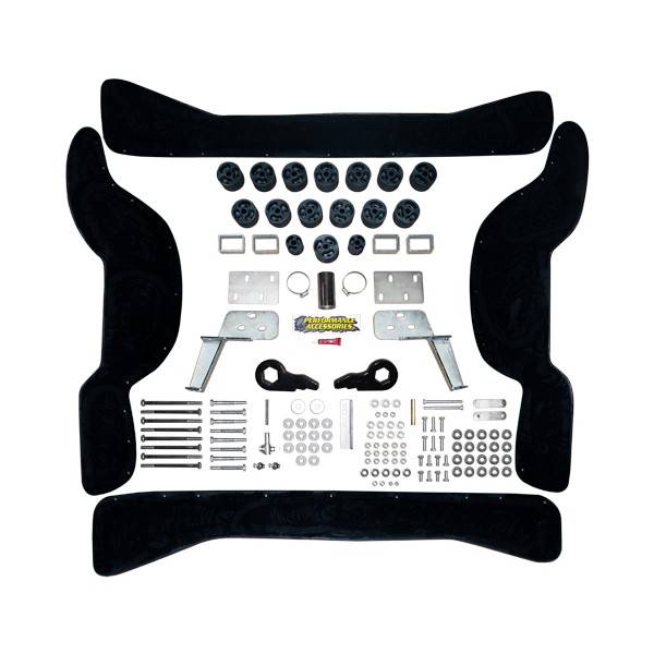 Performance Accessories PAPLS 103 Premium Lift System raises the vehicle 5-inches, by combining the company's high-quality body-lift and leveling kit, allowing the vehicle to run up to a 33-inch diameter tire. The kit includes forged torsion bar keys, high pressure fiberglass reinforced nylon lift blocks, 3/16 inch thick laser cut and powder coated bumper relocation brackets, a CNC machined and zinc plated steering extension, high strength hardware, extension brackets, and urethane wheel-well extensions (Gap Guards) that conceal any gaps between the body and frame. This system can be installed in 8 to 9 hours and comes complete with everything necessary for installation.