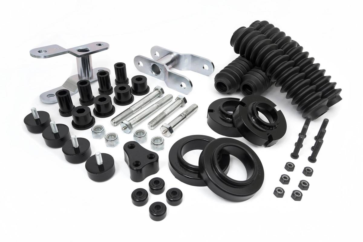 Daystar KT09102BK Suspension System/Lift Kit Black - 2.5 in. Front Strut Spacer - Rear Greasable Shackles - Exhaust Hanger Relocation Bracket - Bump Stops/Shock Boots