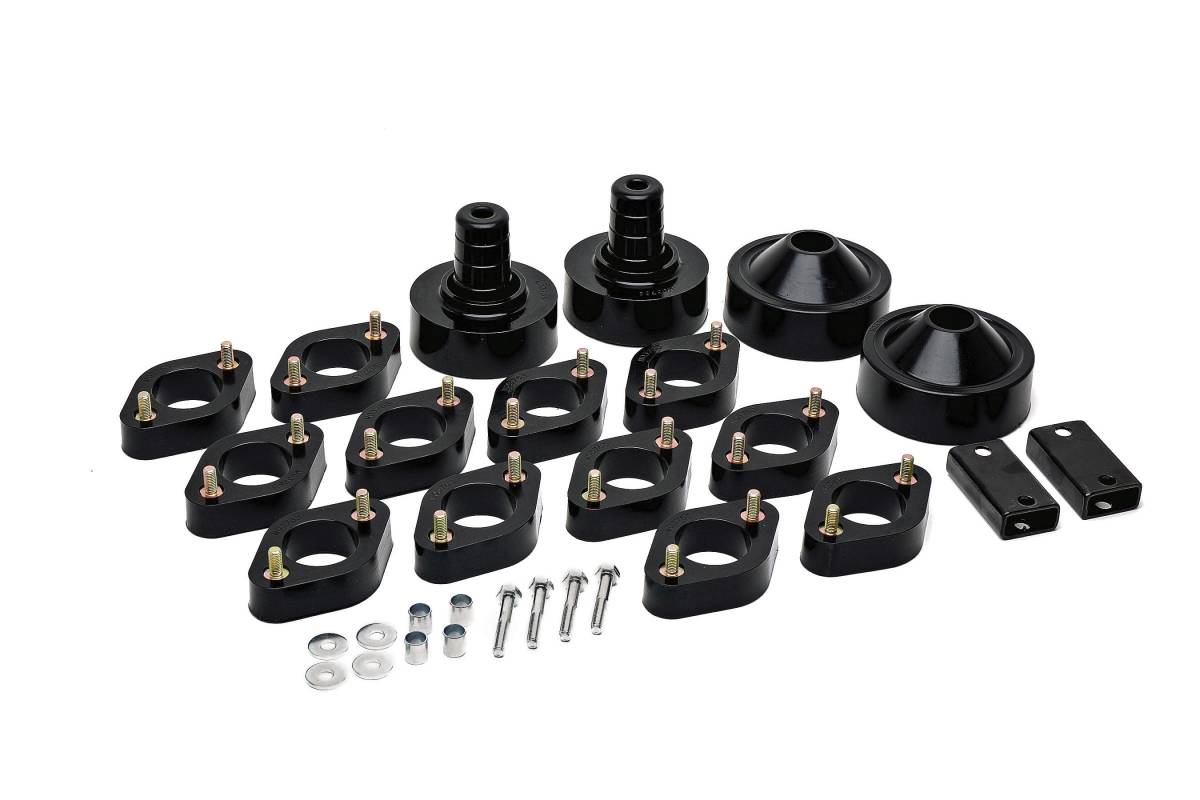 High-density Progressive Polyurethane strut and spring spacers act as isolators to combine moderate amounts of lift without losing the comfortable ride you have come to expect.
