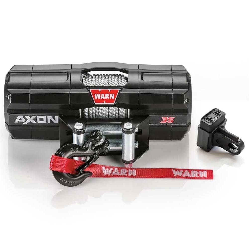 AXON 35 includes 50 ft of 7/32 inch steel rope, roller fairlead, Rockerbar digital control switch with handlebar mount adaptor.
