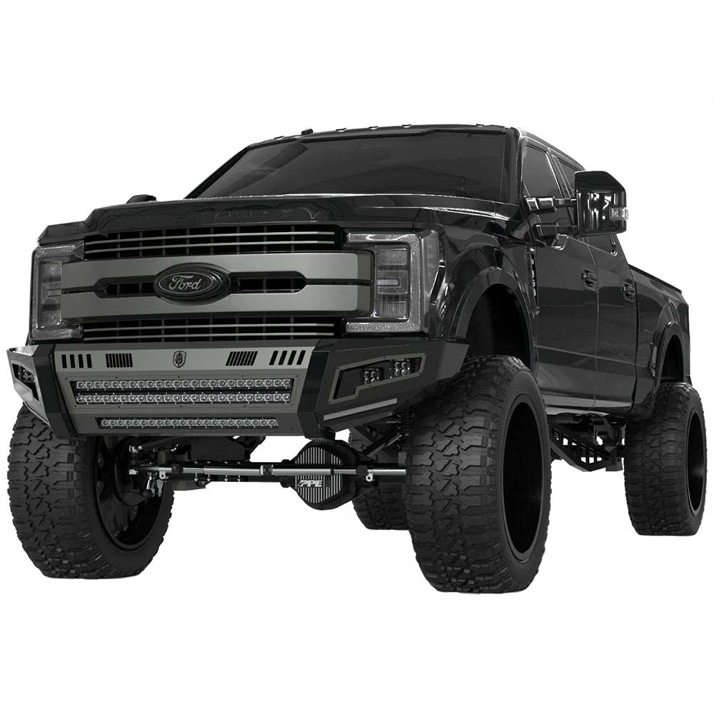 Road Armor 6172DF-A0-P2-MR-BH Identity Non-Shackle Front Bumper with Beauty Ring Mesh and 2 Cube Light Pods for Ford F250/F350/F450 2017-2018