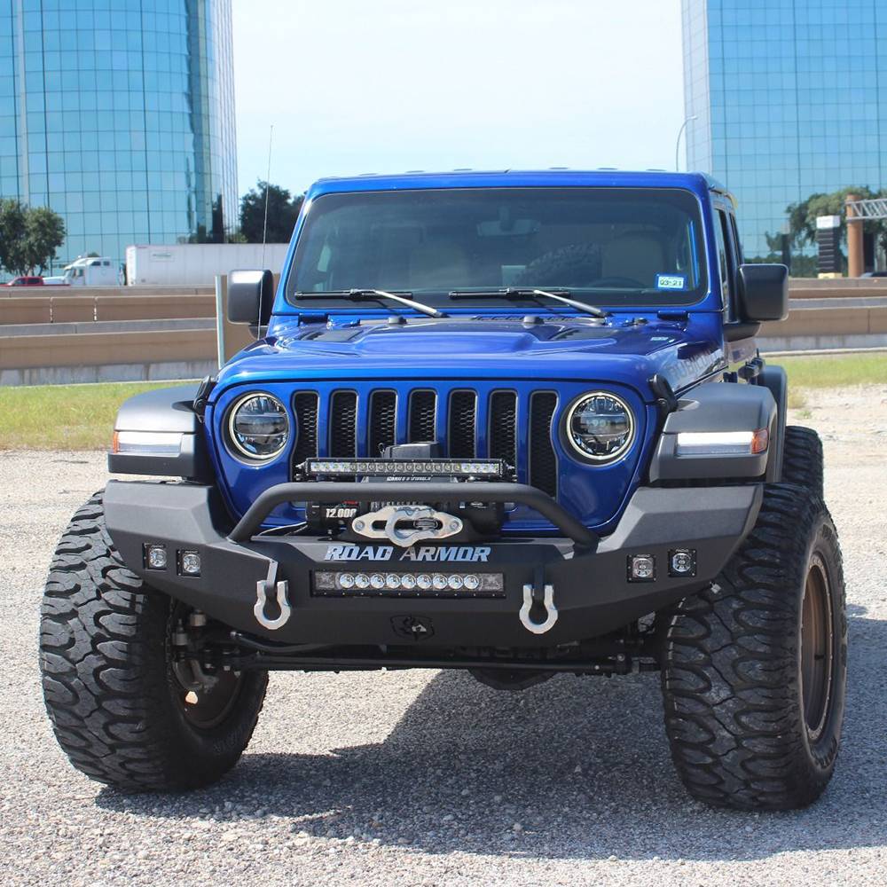 Road Armor 5183F3B Stealth Full Width Winch Front Bumper with Sheetmetal Bar Guard with Square light Holes for Jeep Wrangler JL 2018-2019