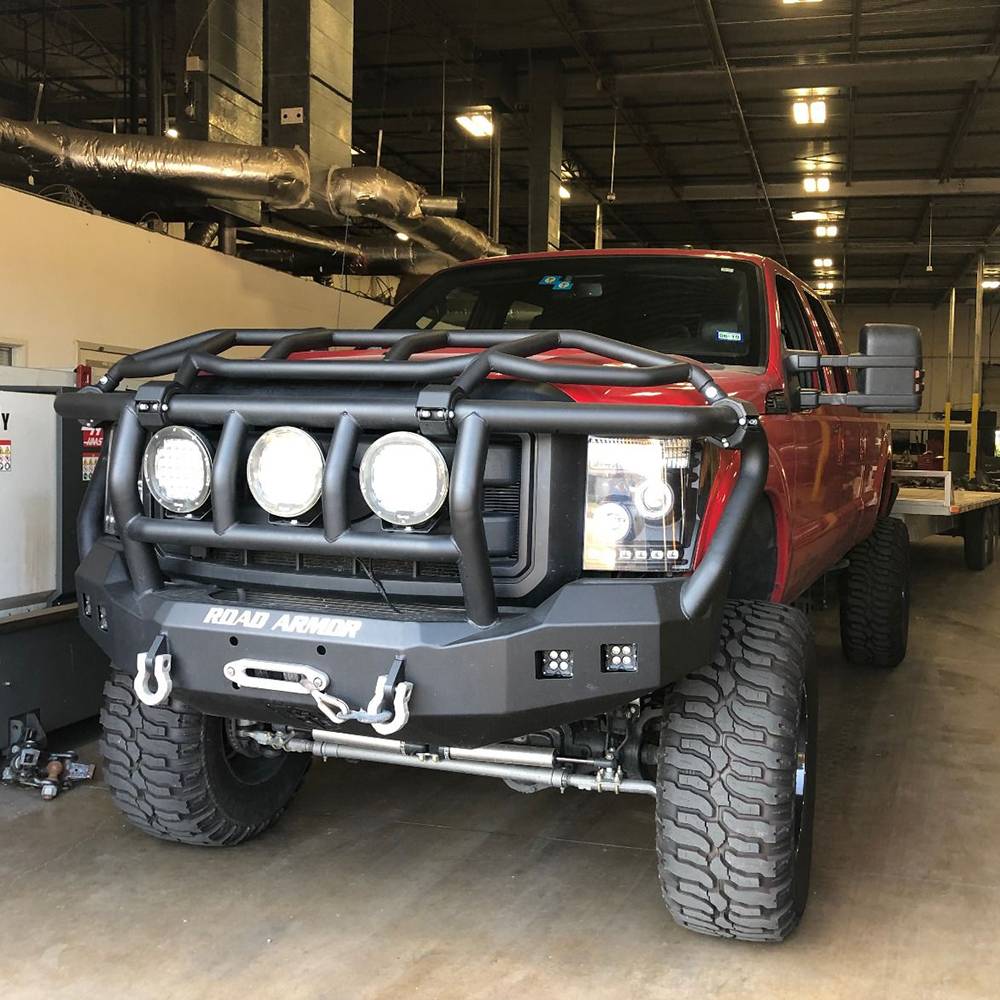 Road Armor 611R3B Stealth Winch Front Bumper with Intimidator Guard and Square Light Holes for Ford F250/F350 2011-2016