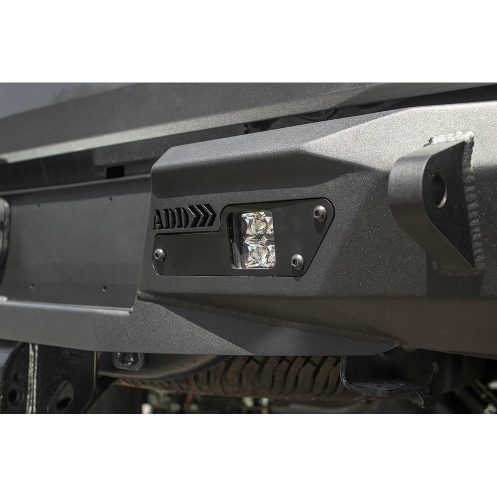 ADD stealth fighter rear bumper for the Toyota tundra is a slim steel plate design that adds protection without adding size or bulk to your truck. Two rear facing cube light mounts come standard with the stealth fighter and integrated reinforced clevis mounts accept a 3/4" D-Ring for added utility. Optional backup sensor cuts retain the tundra OEM features.