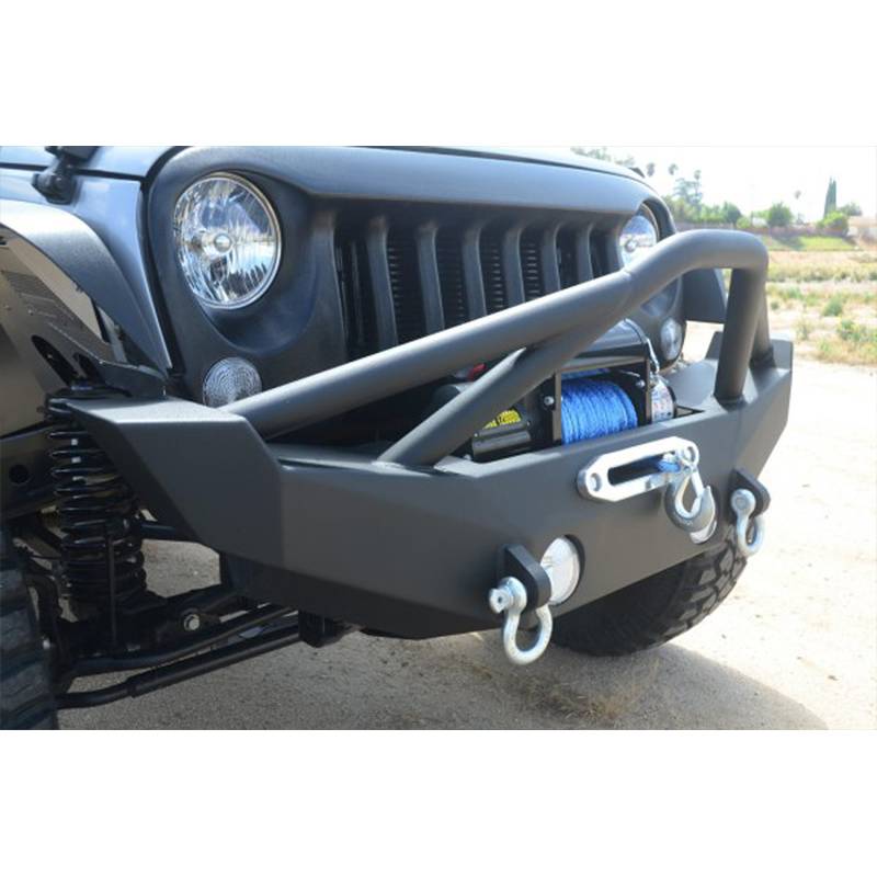 Hammer forged front bumpers were designed and built with hardcore wheeling in mind. Inspired by King of the Hammers style racing and crawling these bumpers are designed to perform on the rocks where you need protection the most. All of our Hammer Forged front bumpers have heavily reinforced winch plates, great approach angles, and are made of thick, high tensile strength steel. The steel thickness of each part of the bumper was chosen to keep strength up and weight down, certain parts of the bumpers are made of 1/4" steel while others are made of 3/16" steel depending on the amount of abuse that each part is likely to take. The result is a lighter, stronger bumper that is ready to take on the toughest challenges that you will throw at your Jeep.