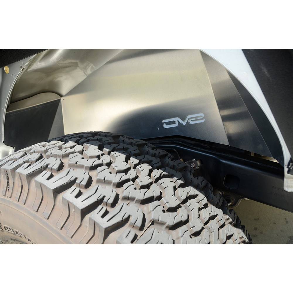 Aluminum inner fenders are designed to reseal your engine compartment when using aftermarket fenders, clean up your inner fender and provide better air flow where it counts. These inner fenders also allow easy access to the shocks and do not require for the fender and inner fender to be removed like DV8's competitors.