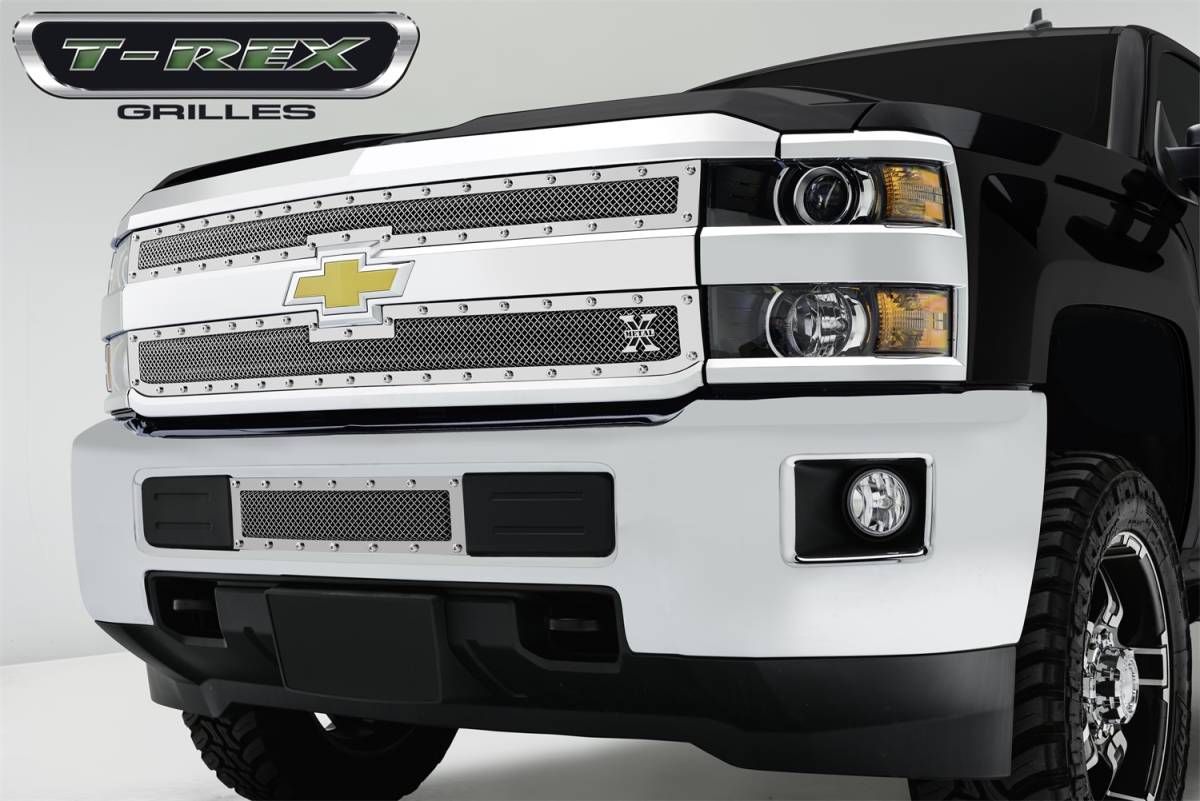 T-Rex Grilles 6721220 X-Metal Series Studded Bumper Grille Insert Small Mesh - Stainless Steel - Polished - Chrome Studs - 1 Pc - Insert