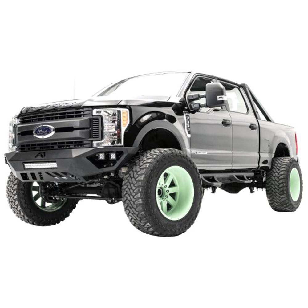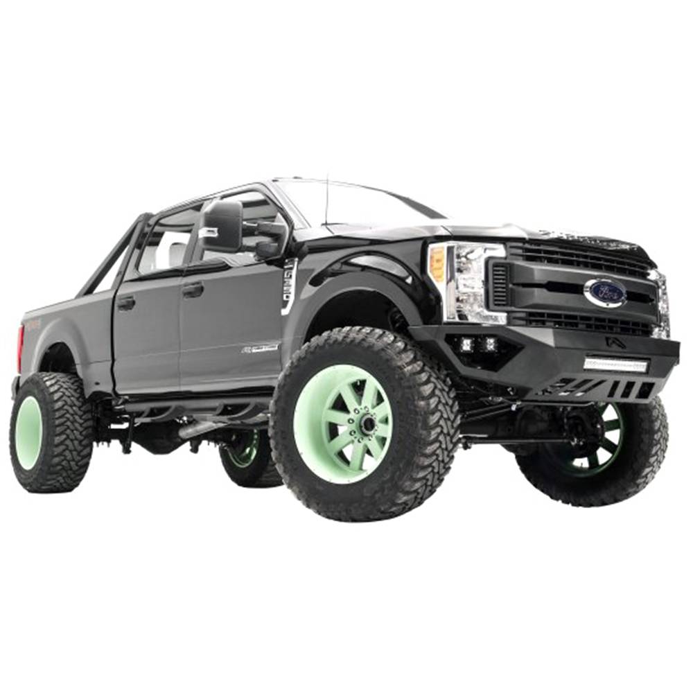 The Fab Fours premium steel sensor bumpers are engineered to be light weight and offer a sleek and stylish finish for both the front and rear of your vehicle and designed to work specifically with the fab fours open fender system. Integrated 20 inch LED light bar housing in the center and mounting options on each side for (2) 3X3 pod LEDs to give you maximum LED light coverage. The fit of this bumper is high and tight and comes with lower cutouts to provide increased airflow while also giving you that aggressive look both on and off the road.