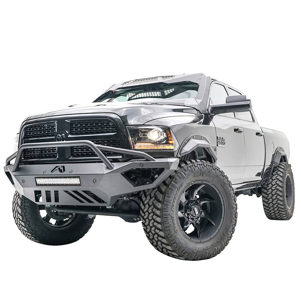 Fab Fours DR16-V4062-1 Open Fender Front Bumper with Pre-Runner Guard and Sensor Holes for Dodge Ram 2500/3500/4500/5500 2016-2018