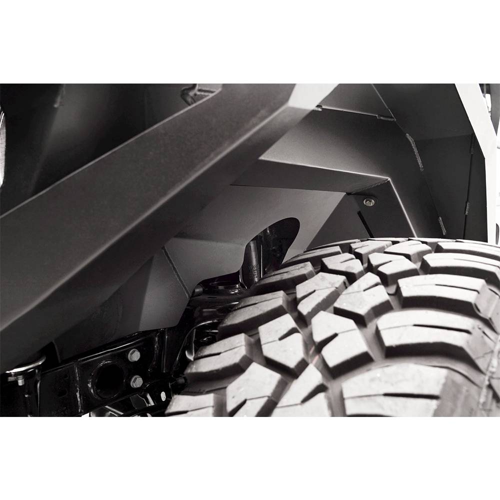The Fab Fours Front Fender Replacement System focuses on aggressive styling, ease of installation, and modularity. A complete bolt on system with optional parts that adds greater tire clearance and allows you to run a larger tire.
