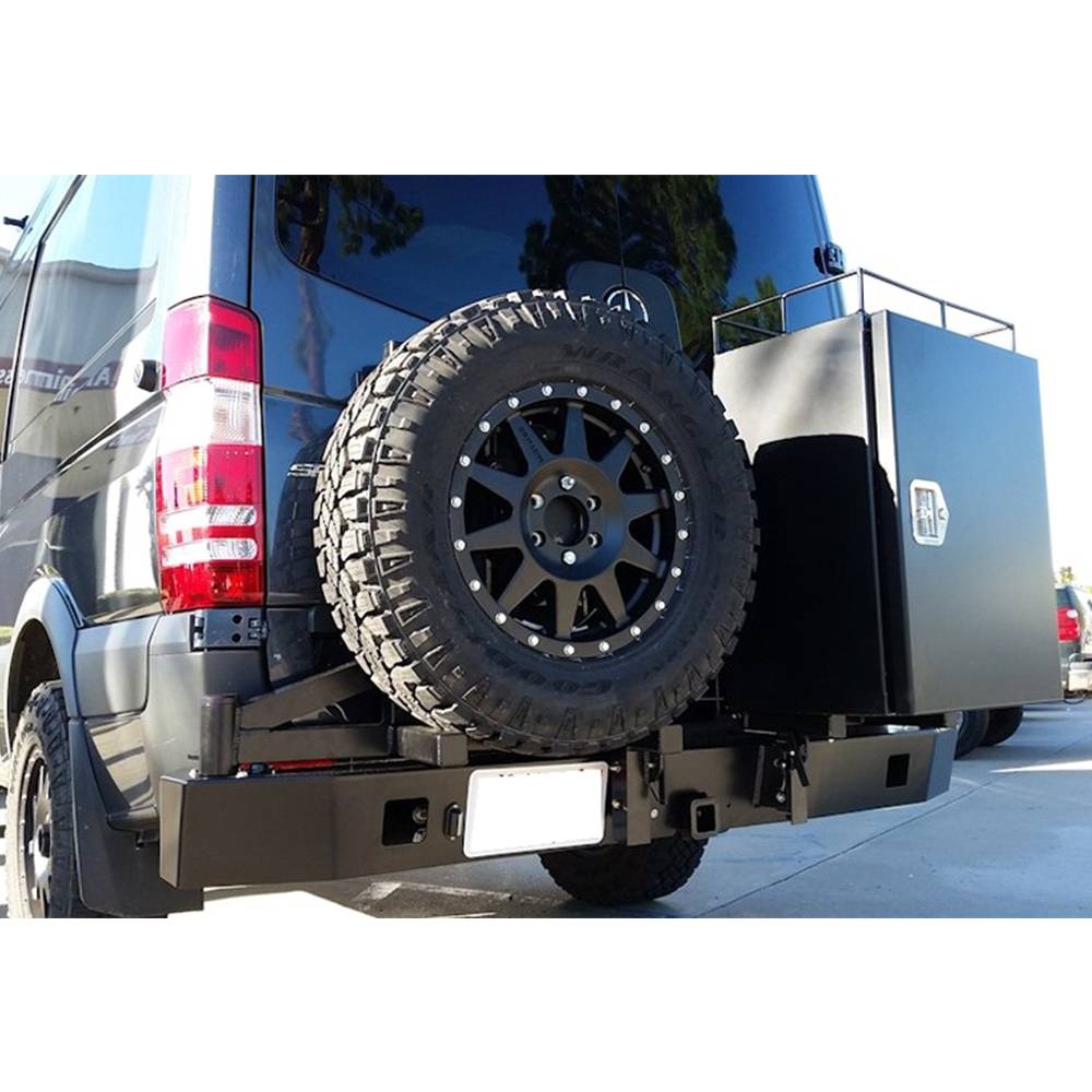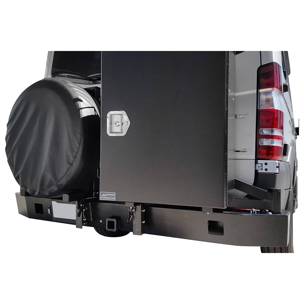 Many Mercedes Sprinter owners convert their vehicles into motor homes. Many of those conversions benefit from outside storage for generators, camping stoves, BBQ's and other dirty items that you don't want inside your vehicle. Aluminess rear bumpers are set up to carry those items, along with a spare tire, allowing you to put extra fuel or water underneath the vehicle.