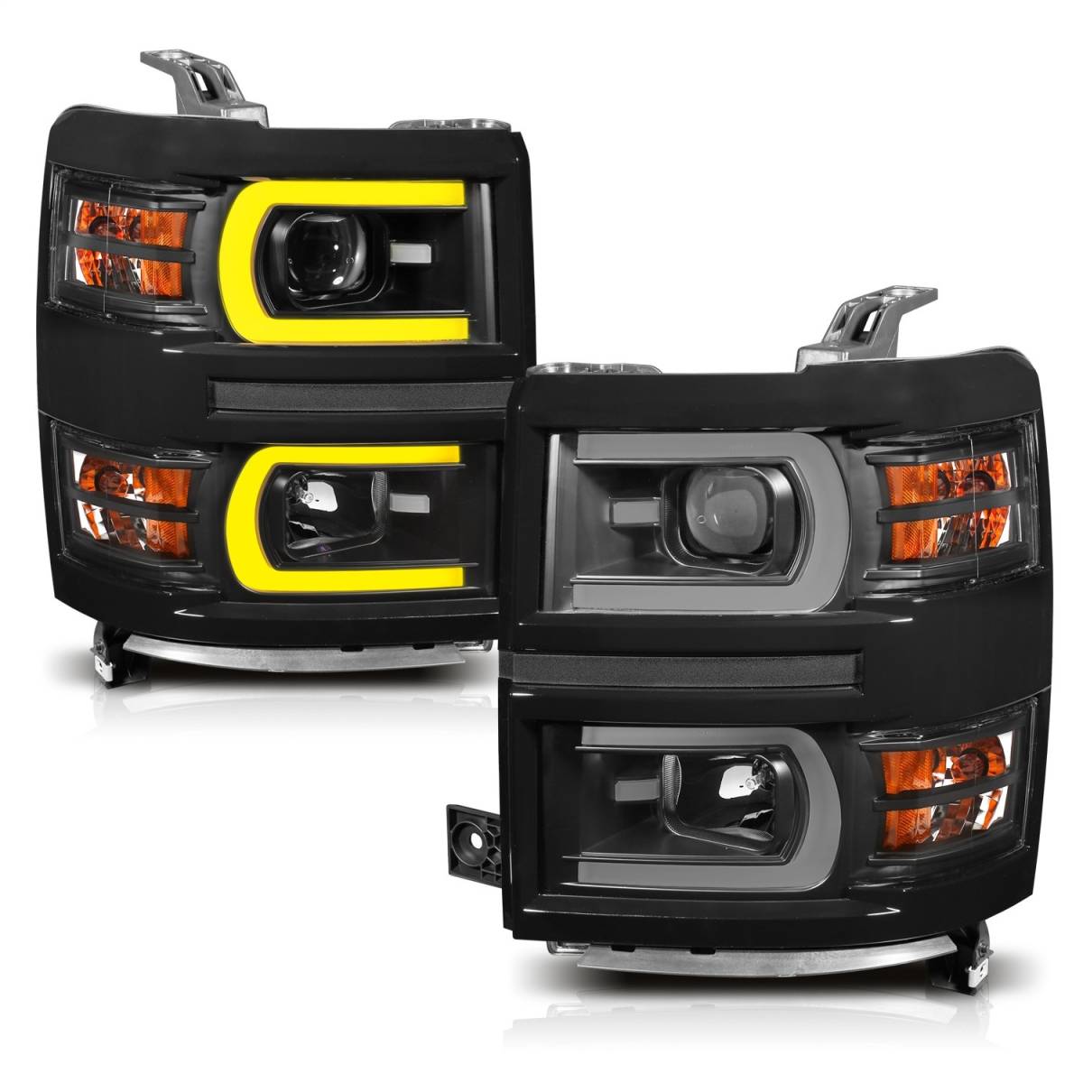Anzo USA 111412 Projector Headlight Set w/Plank Style Switchback - Black w/Amber - Pair