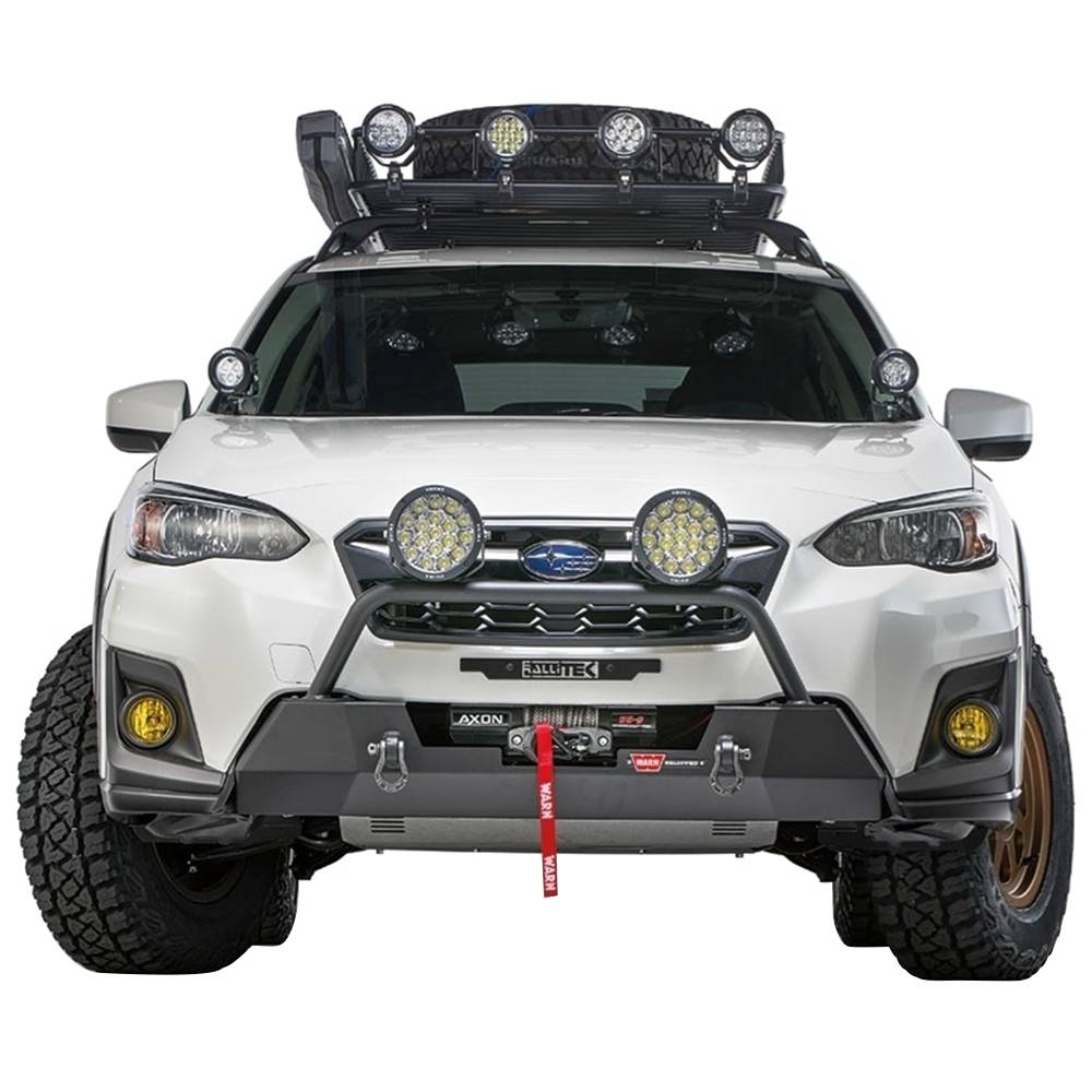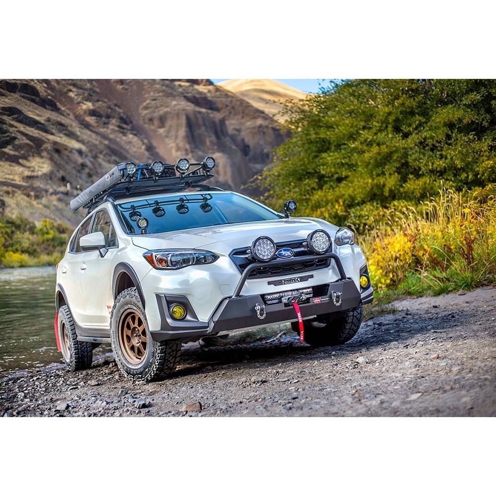 Warn winch mounting system for Subaru 2018-2020 Crosstrek. Fully-tested and compatible with AXON 45, AXON 55, VRX 45, and other powersports winches up to 6,000 lb in capacity (with mounting bolt pattern: 3.0 inch x 6.59 inch or 76.2 mm x 167.4 mm).
