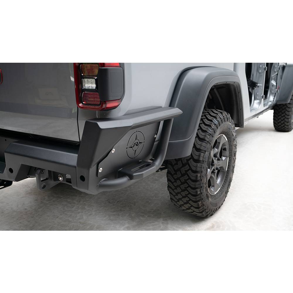 The Fab Fours Jeep Gladiator rear bumper is the perfect combination of form and function. This bumper is designed to be the ultimate in functionally-stylish rear end protection.