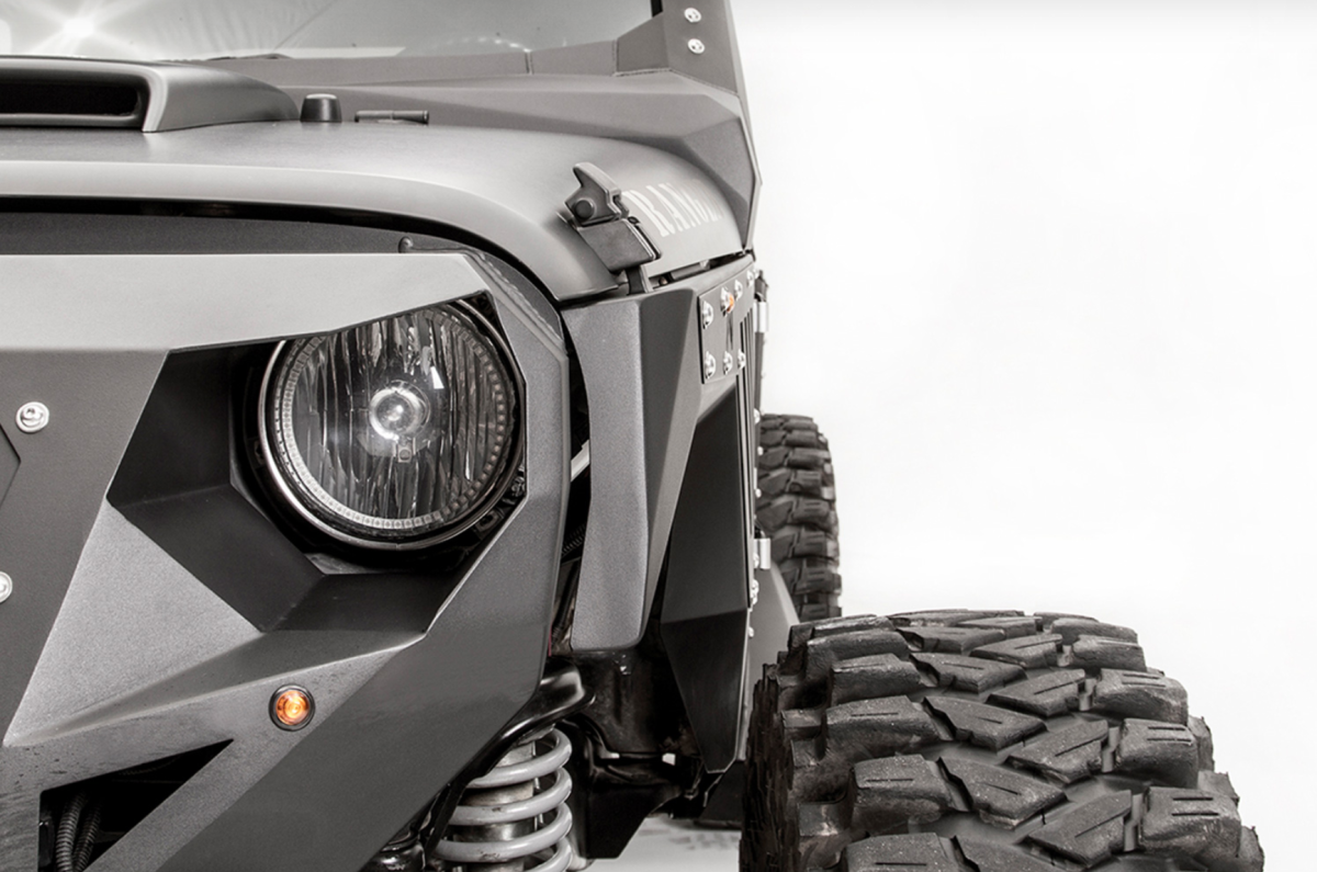 The Fab Fours’ Front Fender Replacement System focuses on aggressive styling, ease of installation, and modularity. A complete bolt on system with optional parts that adds greater tire clearance and allows you to run a larger tire. All parts are 100% U.S. steel and manufactured here in South Carolina, USA.