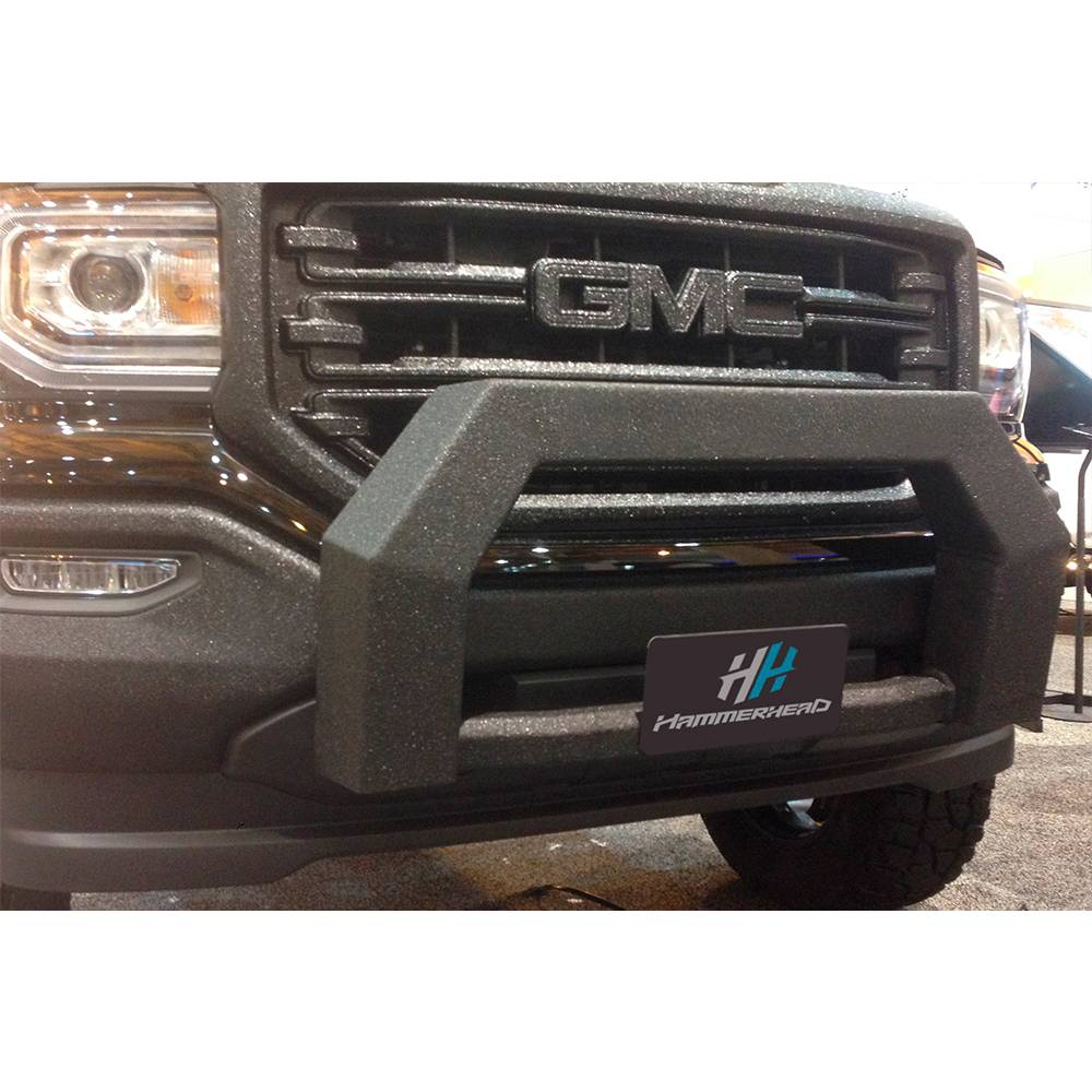 Hammerhead bull bar is a front-end light bar designed for trucks. It is made with 0.120" plate steel. It mounts utilizing existing vehicle mounting points and installation does not require any drilling to the vehicle frame. This product comes complete with mounting kit.