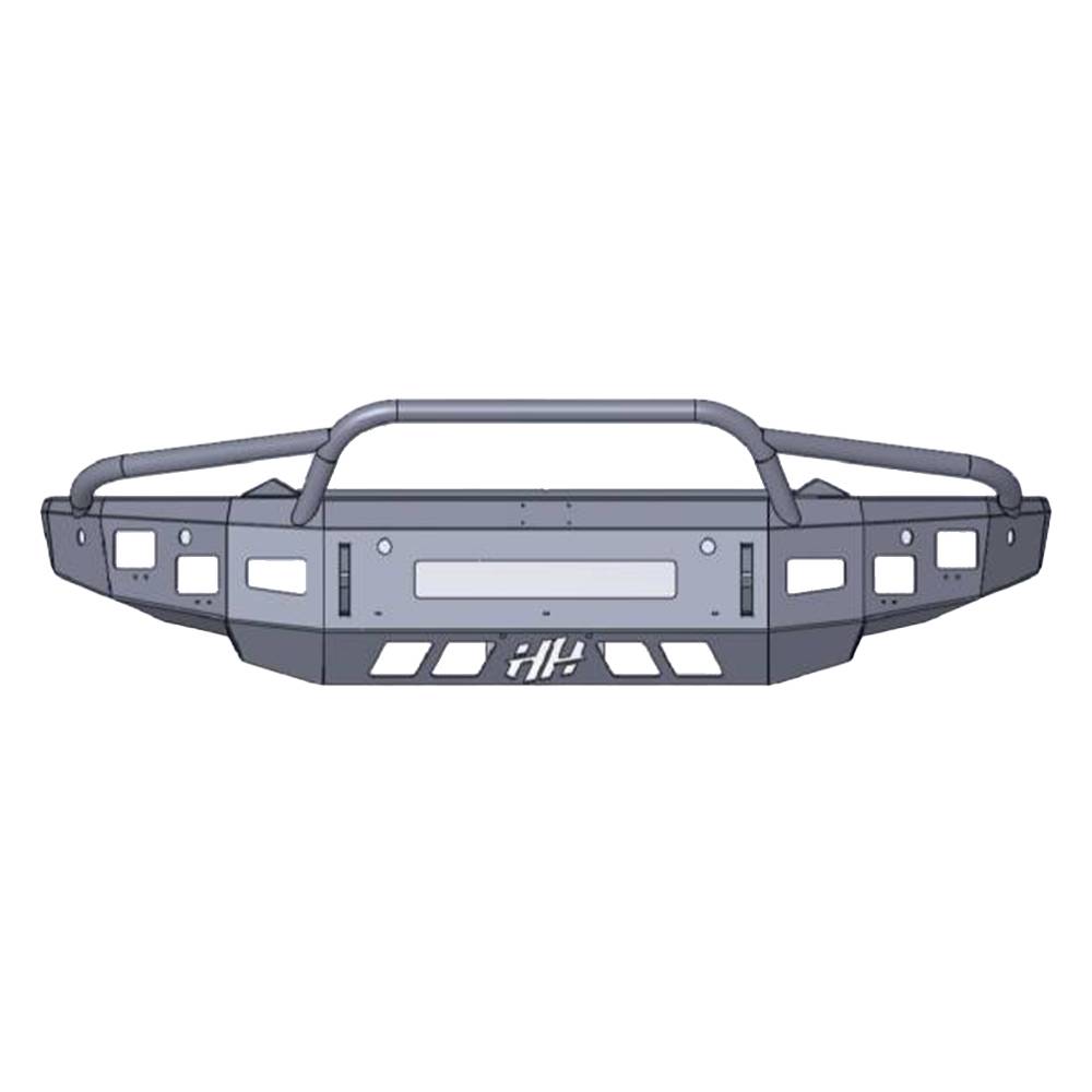 Hammerhead front bumpers are designed to stand up to the punishment of on-road and off-road driving. Accommodates up to four 3.25" x 3.25" external dimension cube after-market off-road fog lights, as well as lights on the pre-runner bar and a 20" light bar in the center of the bumper. Reinforced to allow for extra strength while keeping the bumper as light as possible. The 0.750" thick shackle mounts are a part of the mounting surface to the frame, extending through the bumper and are welded on the inside and outside of the bumper. The pre-runner brush guard is made with 1.75" x 0.120" wall tubing. Does not fit the Rebel model. Does not fit the Ram Warlock edition. Hammerhead Armor cannot guarantee that your OEM sensors will function properly with our bumpers. Will not accommodate a winch or front receiver hitch.