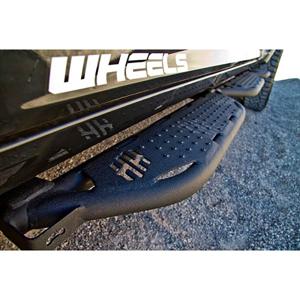 Get the Hammerhead black wheel to wheel running boards and make getting in and out of your vehicle a safer experience. Hammerhead running boards are built tough hold up to 300 pounds on each stepping platform, with three platforms on each board. Hammerhead wheel to wheel running boards are made in the USA from high grade 1.75" steel tubing and are finished in a 2 stage black powder-coat that will hold up to the harshest conditions.