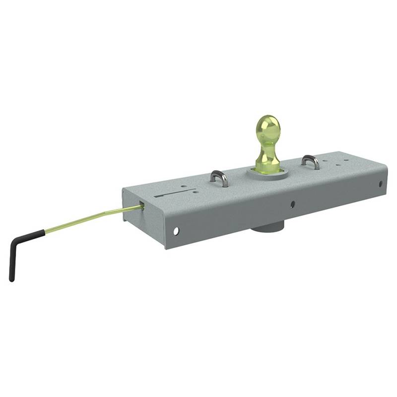 - Flexible latch pin handle attached to a spring loaded, 5/8" steel locking pin that goes completely through the ball