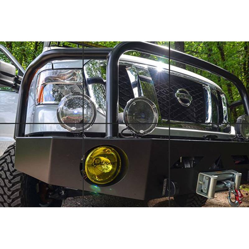 - Standard bumper configuration is round lights and 2" brush guard