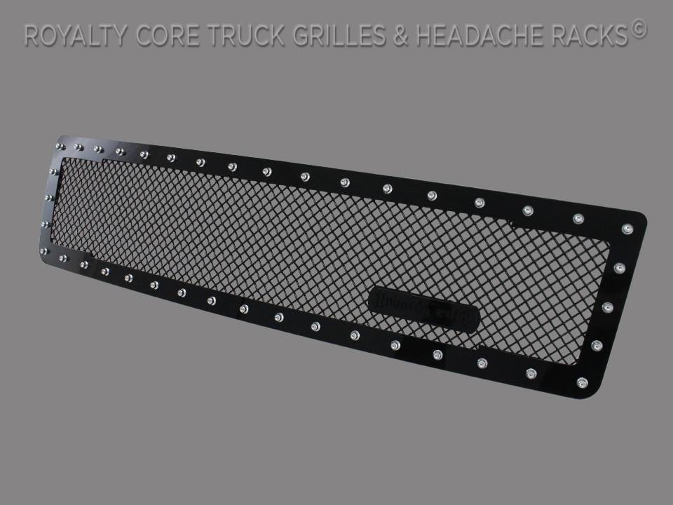Royalty Core's proprietary corrosion resistant stainless technology creates the most durable grille on the planet. Absolutely every piece is 100% T304 stainless steel. It's engineered to exploit the cleanest installation possible for your specific truck model. This Royalty Core grille is customized to best match your truck with military grade strength you can count on such as a 12 gauge stainless steel construction, optimal mounting brackets, CNC precision machined brackets, frame, and logos, hand fabricated, all gloss surfaces are buffed to a deep smooth mirrored finish,triple chrome plated T304 stainless studs around frame with star flange design, stainless super woven mesh, and absolutely no plastic. Royalty Core offers the industry's largest customized line of grilles and logos available.
