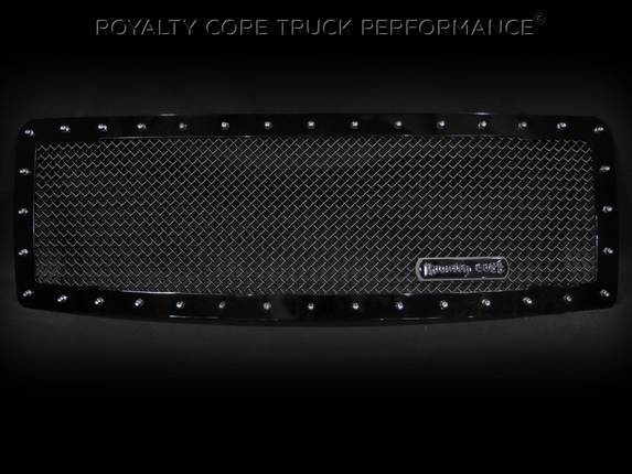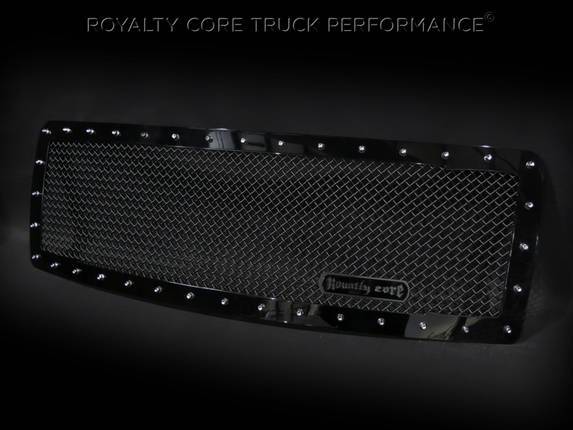 Royalty Core's proprietary corrosion resistant stainless technology creates the most durable grille on the planet. Absolutely every piece is 100% T304 stainless steel. It's engineered to exploit the cleanest installation possible for your specific truck model. This Royalty Core grille is customized to best match your truck with military grade strength you can count on such as a 12 gauge stainless steel construction, optimal mounting brackets, CNC precision machined brackets, frame, and logos, hand fabricated, all gloss surfaces are buffed to a deep smooth mirrored finish,triple chrome plated T304 stainless studs around frame with star flange design, stainless super woven mesh, and absolutely no plastic. Royalty Core offers the industry's largest customized line of grilles and logos available.
