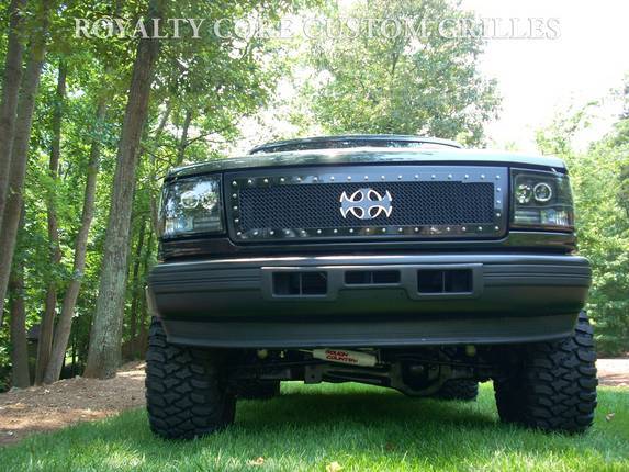 Royalty Core's classic RC1 grille design has clean lines with a dynamic 2-tone appearance for truck enthusiasts looking to make a bold statement. This RC1 design screams 1 custom grille and it shows with a distinct footprint. This grille exposes Royalty Core's race proven diamond mesh for accelerated airflow and appearance. Royalty Core's proprietary corrosion resistant stainless technology creates the most durable grille on the planet. Absolutely every piece is 100% T304 stainless steel. It's engineered to exploit the cleanest installation possible for your specific truck model. This Royalty Core grille is customized to best match your truck with military grade strength you can count on such as a 12 gauge stainless steel construction, optimal mounting brackets, CNC precision machined brackets, frame, and logos, hand fabricated, all gloss surfaces are buffed to a deep smooth mirrored finish,triple chrome plated T304 stainless studs around frame with star flange design, stainless super woven mesh, and absolutely no plastic. Royalty Core offers the industry's largest customized line of grilles and logos available.
