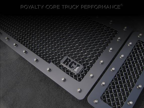 Royalty Core's classic RC1 grille design has clean lines with a dynamic 2-tone appearance for truck enthusiasts looking to make a bold statement. This RC1 design screams 1 custom grille and it shows with a distinct footprint. This grille exposes Royalty Core's race proven diamond mesh for accelerated airflow and appearance. Royalty Core's proprietary corrosion resistant stainless technology creates the most durable grille on the planet. Absolutely every piece is 100% T304 stainless steel. It's engineered to exploit the cleanest installation possible for your specific truck model. This Royalty Core grille is customized to best match your truck with military grade strength you can count on such as a 12 gauge stainless steel construction, optimal mounting brackets, CNC precision machined brackets, frame, and logos, hand fabricated, all gloss surfaces are buffed to a deep smooth mirrored finish,triple chrome plated T304 stainless studs around frame with star flange design, stainless super woven mesh, and absolutely no plastic. Royalty Core offers the industry's largest customized line of grilles and logos available.