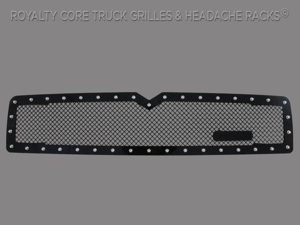 truck model.Royalty Core's proprietary corrosion resistant stainless technology creates the most durable grille on the planet. Absolutely every piece is 100% T304 stainless steel. It's engineered to exploit the cleanest installation possible for your specific truck model. This Royalty Core grille is customized to best match your truck with military grade strength you can count on such as a 12 gauge stainless steel construction, optimal mounting brackets, CNC precision machined brackets, frame, and logos, hand fabricated, all gloss surfaces are buffed to a deep smooth mirrored finish,triple chrome plated T304 stainless studs around frame with star flange design, stainless super woven mesh, and absolutely no plastic. Royalty Core offers the industry's largest customized line of grilles and logos available.