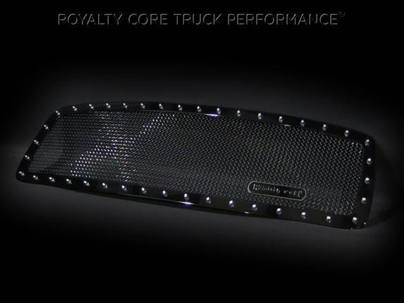 truck model.Royalty Core's proprietary corrosion resistant stainless technology creates the most durable grille on the planet. Absolutely every piece is 100% T304 stainless steel. It's engineered to exploit the cleanest installation possible for your specific truck model. This Royalty Core grille is customized to best match your truck with military grade strength you can count on such as a 12 gauge stainless steel construction, optimal mounting brackets, CNC precision machined brackets, frame, and logos, hand fabricated, all gloss surfaces are buffed to a deep smooth mirrored finish,triple chrome plated T304 stainless studs around frame with star flange design, stainless super woven mesh, and absolutely no plastic. Royalty Core offers the industry's largest customized line of grilles and logos available.