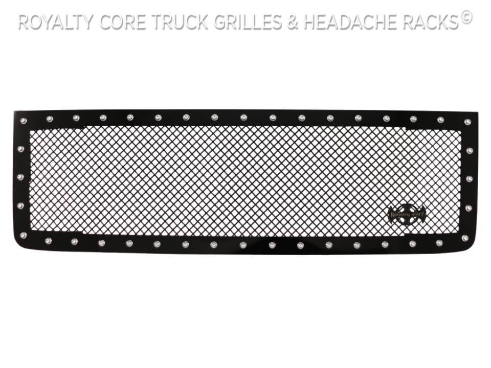 Royalty Core's classic RC1 grille design has clean lines with a dynamic 2-tone appearance for truck enthusiasts looking to make a bold statement. This RC1 design screams one custom grille and it shows with a distinct footprint. This grille exposes Royalty Core's race proven diamond mesh for accelerated airflow and appearance.Each grille has been rigorously tested by Royalty Core engineersto maximize protection, appearance, and performance on and off-road. Lab triedwith rapid salt and chemical spray tests proving the most resilient grille onthe market against the harshest conditions. Simple direct bolt on Royalty Core grilles are engineered to exploit the cleanest installation possible for your specific truck model.Royalty Core's proprietary corrosion resistant stainless technology creates the most durable grille on the planet. Absolutely every piece is 100% T304 stainless steel. It's engineered to exploit the cleanest installation possible for your specific truck model. This Royalty Core grille is customized to best match your truck with military grade strength you can count on such as a 12 gauge stainless steel construction, optimal mounting brackets, CNC precision machined brackets, frame, and logos, hand fabricated, all gloss surfaces are buffed to a deep smooth mirrored finish,triple chrome plated T304 stainless studs around frame with star flange design, stainless super woven mesh, and absolutely no plastic. Royalty Core offers the industry's largest customized line of grilles and logos available.