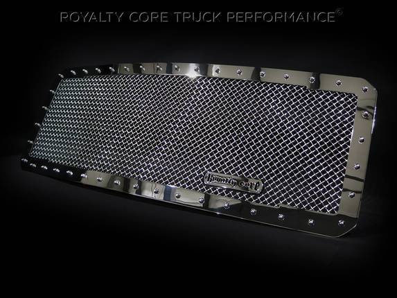 Royalty Core's proprietary corrosion resistant stainless technology creates the most durable grille on the planet. Absolutely every piece is 100% T304 stainless steel. It's engineered to exploit the cleanest installation possible for your specific truck model. This Royalty Core grille is customized to best match your truck with military grade strength you can count on such as a 12 gauge stainless steel construction, optimal mounting brackets, CNC precision machined brackets, frame, and logos, hand fabricated, all gloss surfaces are buffed to a deep smooth mirrored finish,triple chrome plated T304 stainless studs around frame with star flange design, stainless super woven mesh, and absolutely no plastic. Royalty Core offers the industry's largest customized line of grilles and logos available.