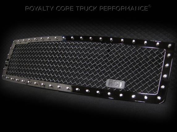 Royalty Core's classic RC1 grille design has clean lines with a dynamic 2-tone appearance for truck enthusiasts looking to make a bold statement. This RC1 design screams 1 custom grille and it shows with a distinct footprint. This grille exposes Royalty Core's race proven diamond mesh for accelerated airflow and appearance. Royalty Core's proprietary corrosion resistant stainless technology creates the most durable grille on the planet. Absolutely every piece is 100% T304 stainless steel. It's engineered to exploit the cleanest installation possible for your specific truck model. This Royalty Core grille is customized to best match your truck with military grade strength you can count on such as a 12 gauge stainless steel construction, optimal mounting brackets, CNC precision machined brackets, frame, and logos, hand fabricated, all gloss surfaces are buffed to a deep smooth mirrored finish, half inch detailed star point stainless stud design with secondary option for dimension, 5/16 & 3/8 threads, stainless super woven mesh, and absolutely no plastic. Royalty Core offers the industry's largest customized line of grilles and logos available.