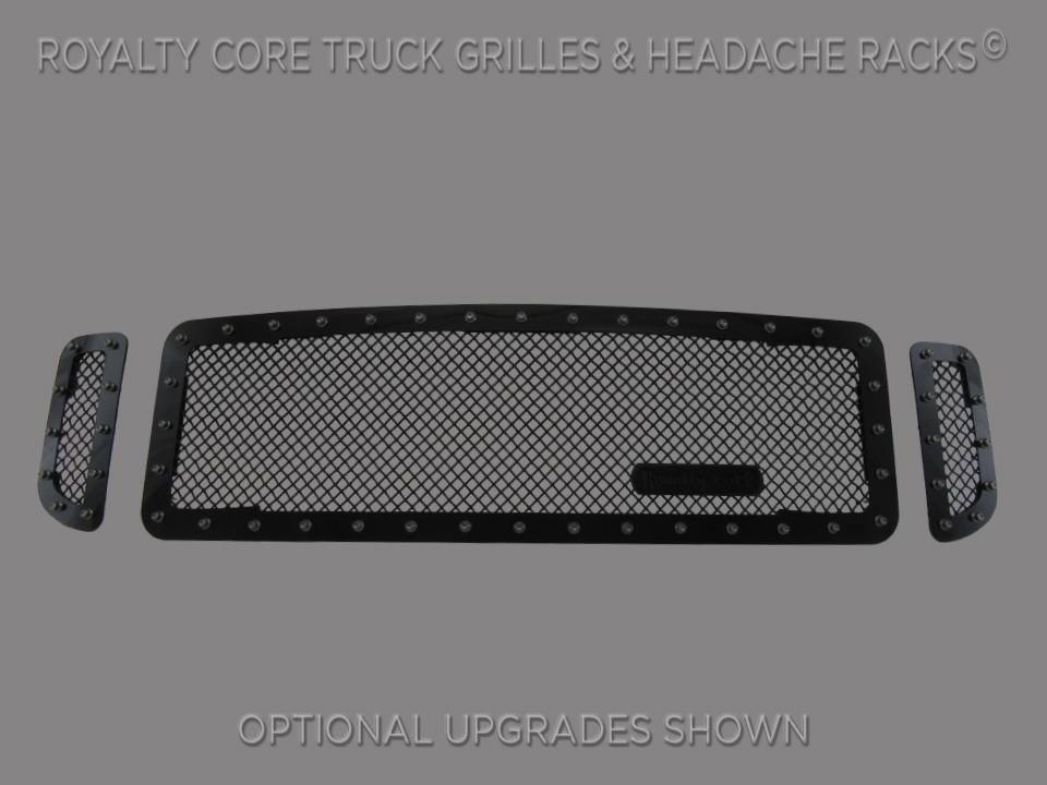 Royalty Core's proprietary corrosion resistant stainless technology creates the most durable grille on the planet. Absolutely every piece is 100% T304 stainless steel. It's engineered to exploit the cleanest installation possible for your specific truck model. This Royalty Core grille is customized to best match your truck with military grade strength you can count on such as a 12 gauge stainless steel construction, optimal mounting brackets, CNC precision machined brackets, frame, and logos, hand fabricated, all gloss surfaces are buffed to a deep smooth mirrored finish,triple chrome plated T304 stainless studs around frame with star flange design, stainless super woven mesh, and absolutely no plastic. Royalty Core offers the industry's largest customized line of grilles and logos available.