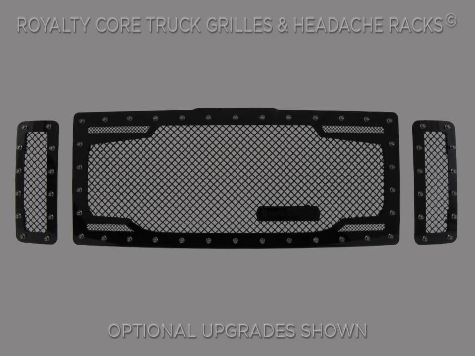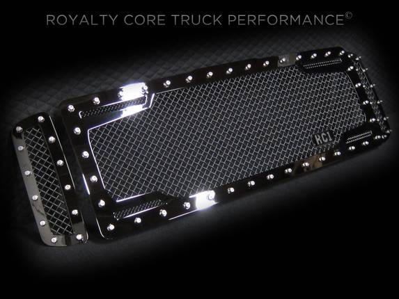 Royalty Core's proprietary corrosion resistant stainless technology creates the most durable grille on the planet. Absolutely every piece is 100% T304 stainless steel. It's engineered to exploit the cleanest installation possible for your specific truck model. This Royalty Core grille is customized to best match your truck with military grade strength you can count on such as a 12 gauge stainless steel construction, optimal mounting brackets, CNC precision machined brackets, frame, and logos, hand fabricated, all gloss surfaces are buffed to a deep smooth mirrored finish,triple chrome plated T304 stainless studs around frame with star flange design, stainless super woven mesh, and absolutely no plastic. Royalty Core offers the industry's largest customized line of grilles and logos available.