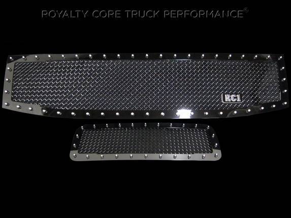 Royalty Core's classic RC1 grille design has clean lines with a dynamic 2-tone appearance for truck enthusiasts looking to make a bold statement. This RC1 design screams 1 custom grille and it shows with a distinct footprint. This grille exposes Royalty Core's race proven diamond mesh for accelerated airflow and appearance. Royalty Core's proprietary corrosion resistant stainless technology creates the most durable grille on the planet. Absolutely every piece is 100% T304 stainless steel. It's engineered to exploit the cleanest installation possible for your specific truck model. This Royalty Core grille is customized to best match your truck with military grade strength you can count on such as a 12 gauge stainless steel construction, optimal mounting brackets, CNC precision machined brackets, frame, and logos, hand fabricated, all gloss surfaces are buffed to a deep smooth mirrored finish, half inch detailed star point stainless stud design with secondary option for dimension, 5/16 & 3/8 threads, stainless super woven mesh, and absolutely no plastic. Royalty Core offers the industry's largest customized line of grilles and logos available.